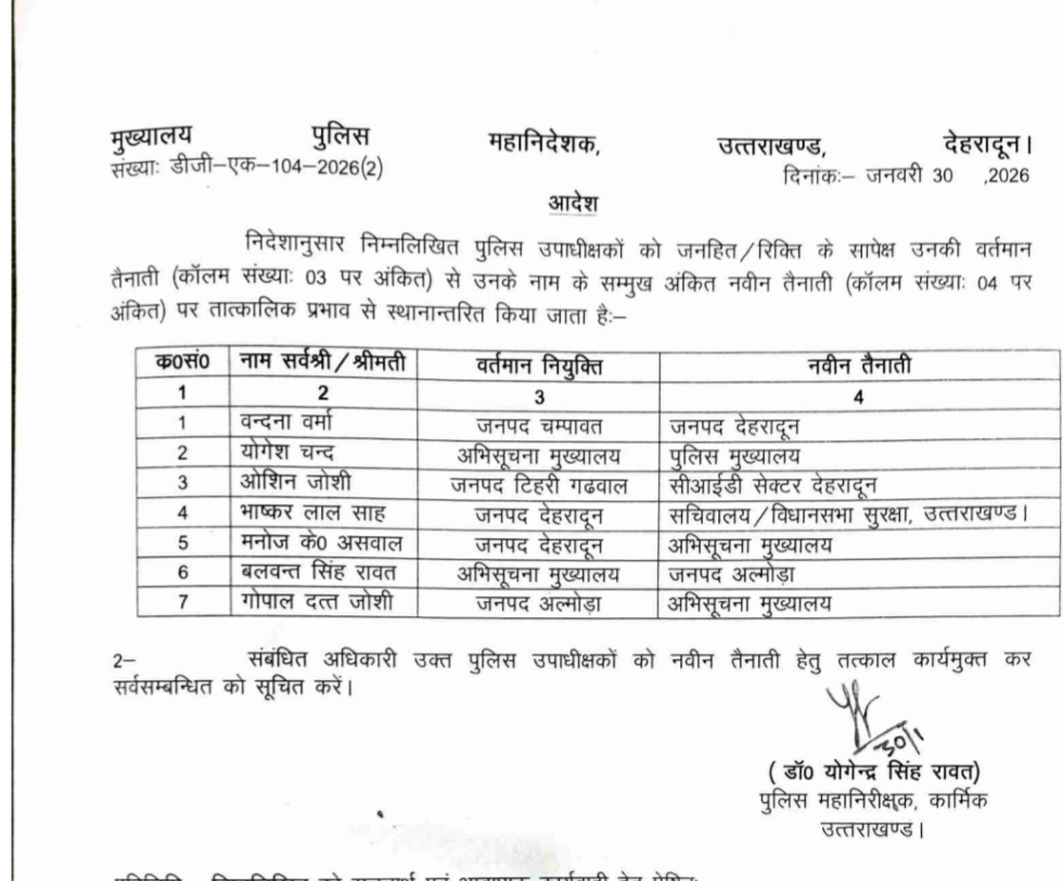 The post पुलिस अधिकारियों के तबादले appeared first on Avikal Uttarakhand.